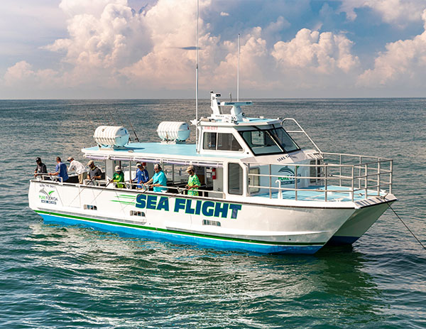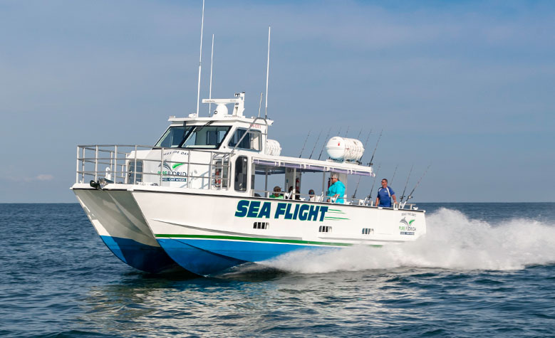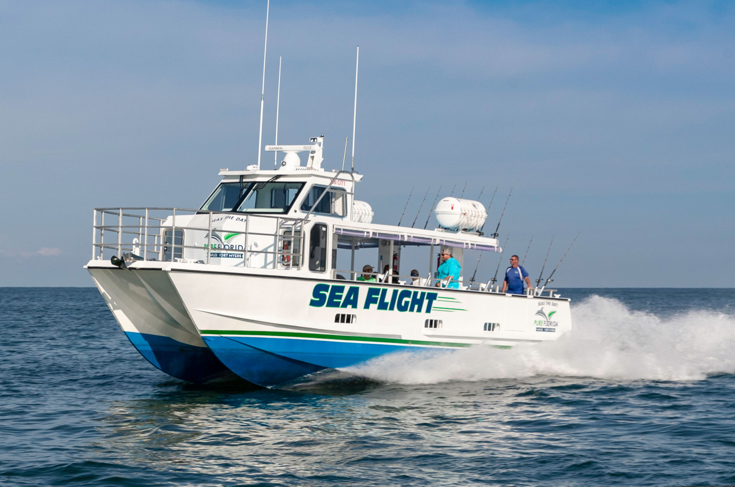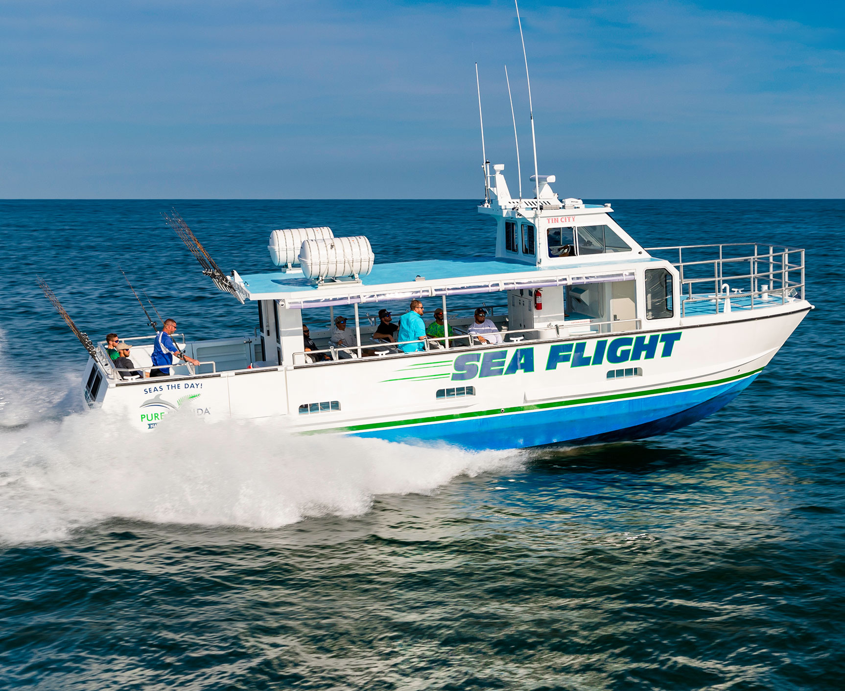 Fish aboard the fastest head boat in the region! Skilled Captains take anglers 20 – 40 miles offshore, depending on charter time and weather, to spots where anglers take on grouper, redfish, snapper, permit, mahi mahi, sharks and more! The Gulf always keeps it exciting! Four-hour, Six-hour and Eight-hour public and private charters! If you love fishing, you don’t want to go anywhere else but aboard M/V Sea Flight.