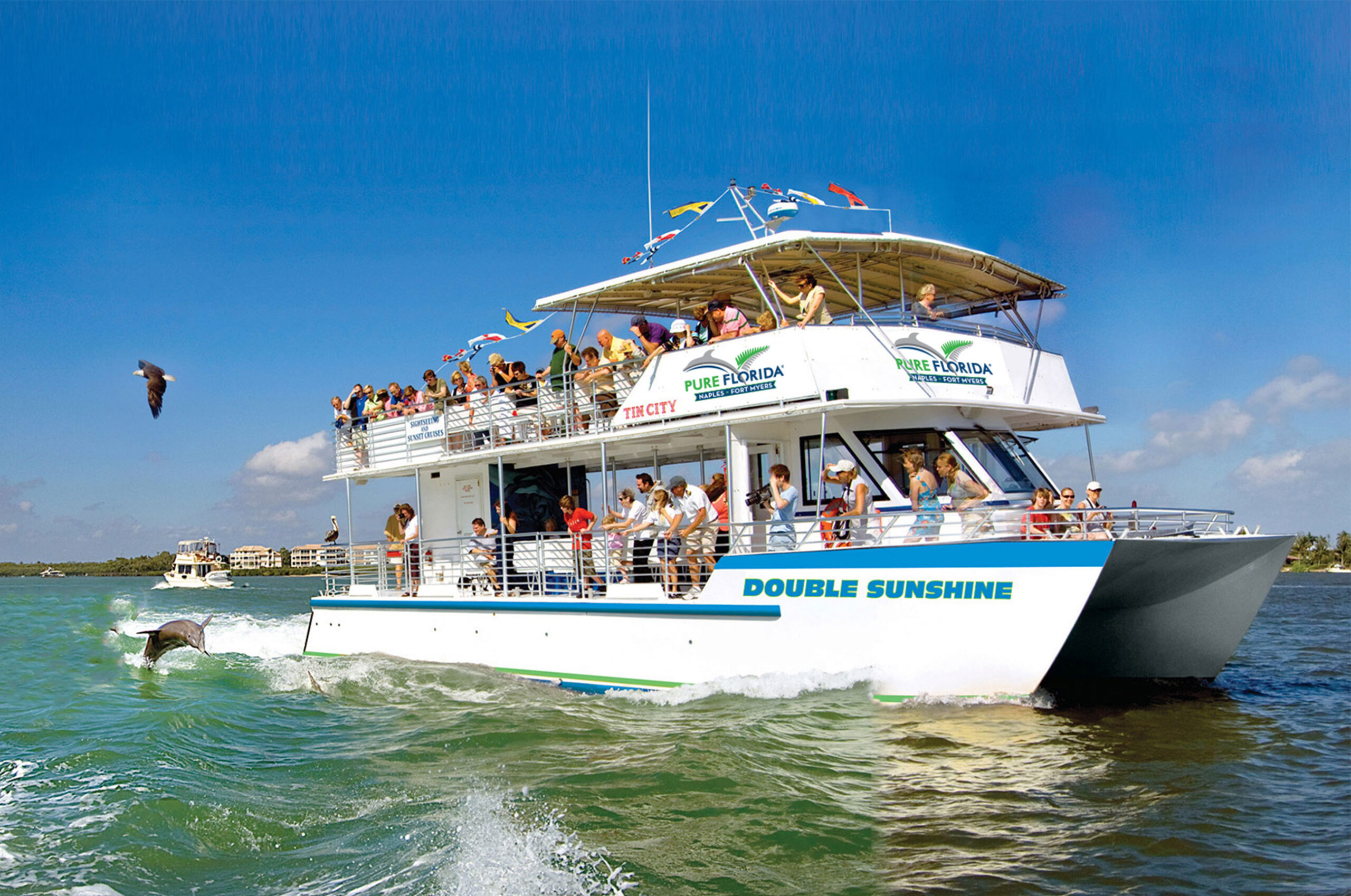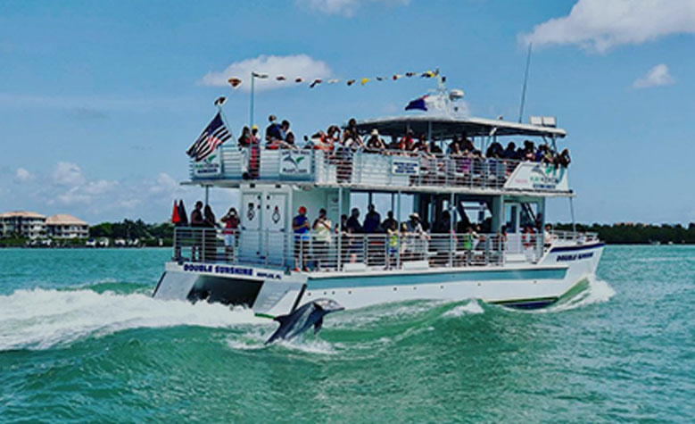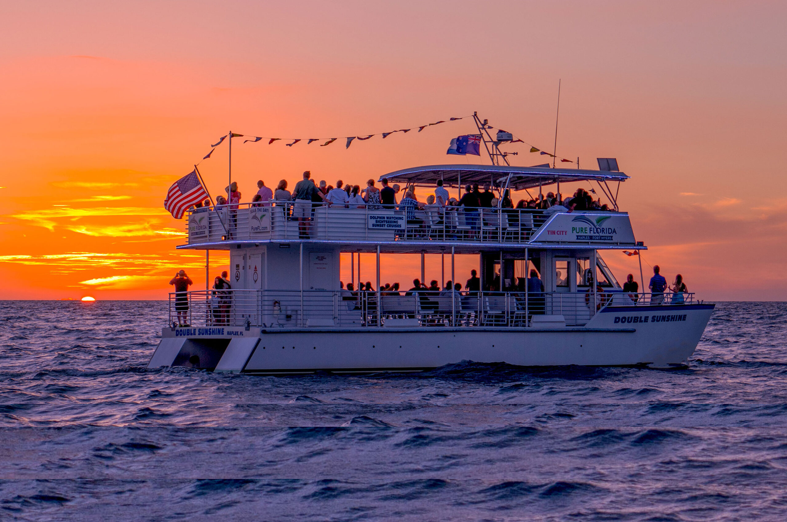 Come aboard M/V Double Sunshine, a legacy-vessel cruising Naples waterways for over 20 years! This fun, feel-good tour takes you through the canals of Port Royal to check out luxurious mansions, dolphins and then out to the Gulf to watch the setting sun. Move to the music, enjoy the crew’s story-telling and whether top or lower deck, you are sure to have a great time!